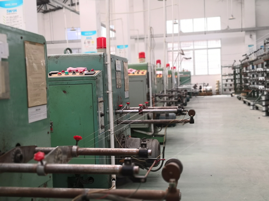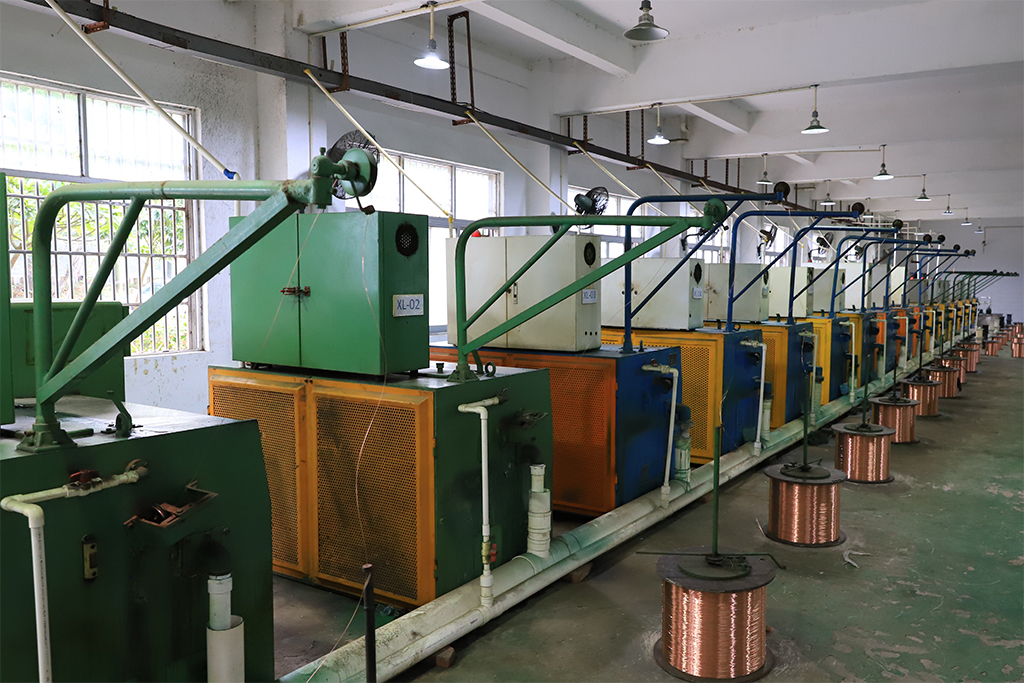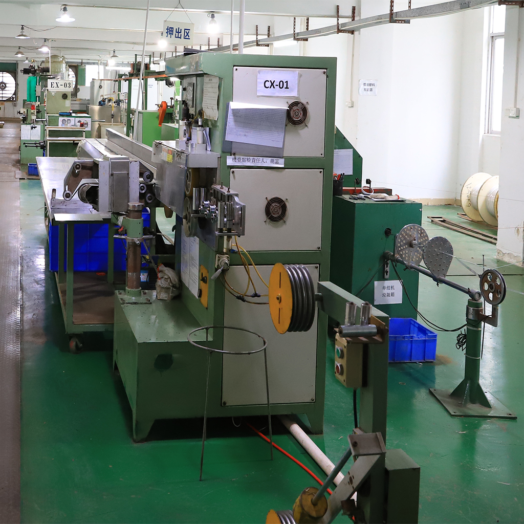 生产设备包括中拉机、细拉机、微拉机、退火镀锡机、绞合机、编织机、注塑机、打端机、裁线机。